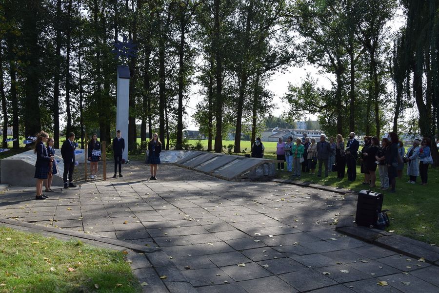 It is built to the glory of the Jewish Community of Vilkkaviskis
