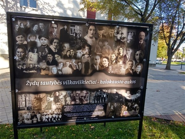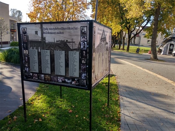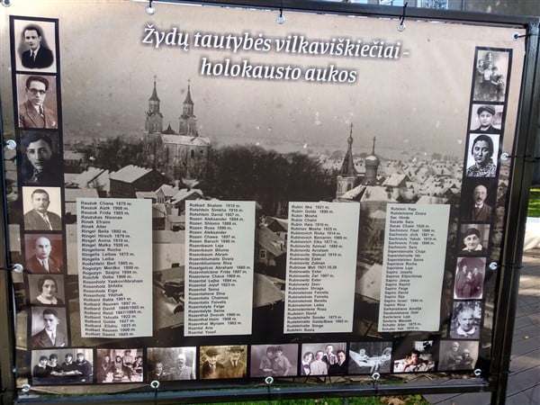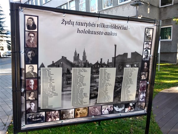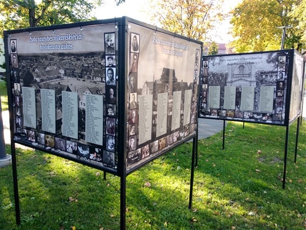These stands where created by the Vilkaviskis Municipality with the names and pictures of the Jewish citizens who were murdered here in 1941