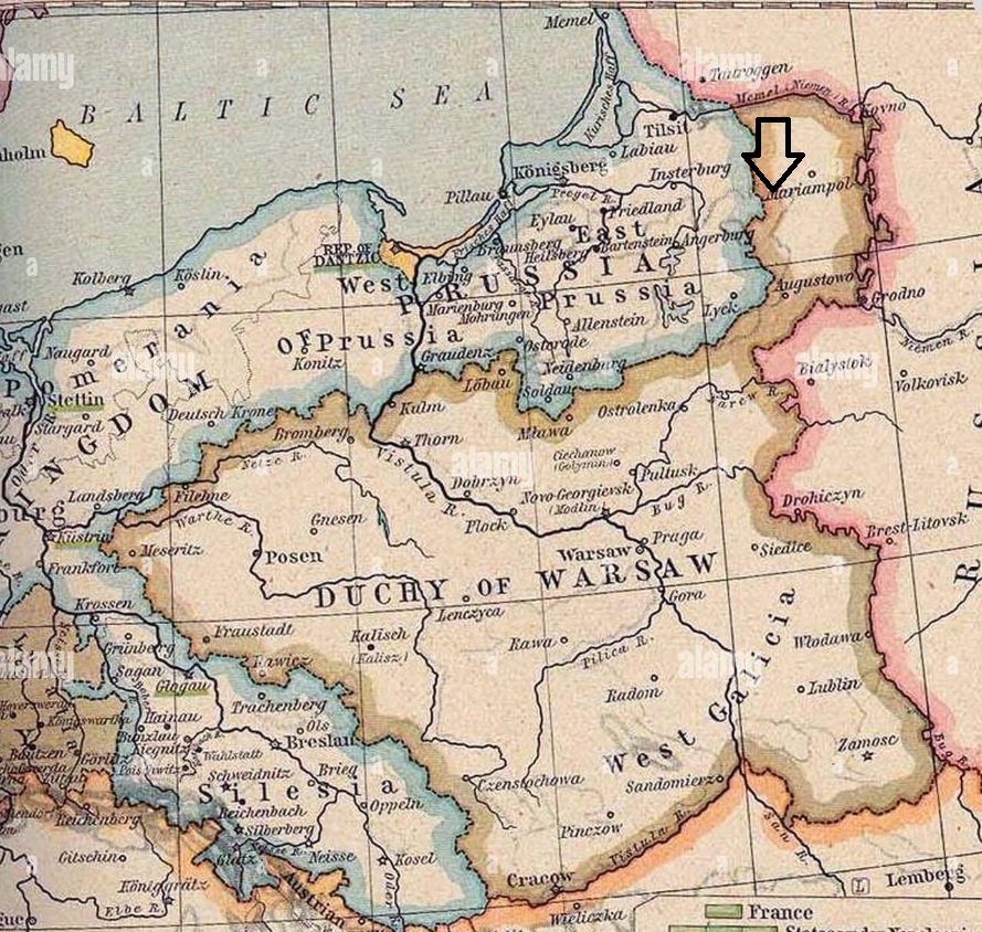 The arrow shows the position of Vilkaviskis in the Duchy of Vilkaviskis