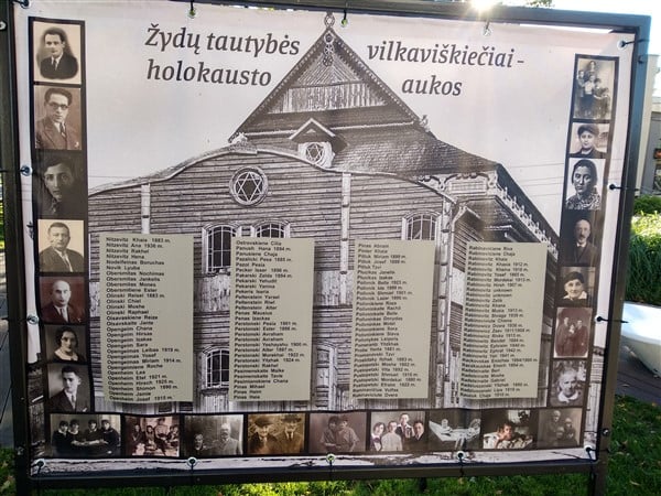 These stands where created by the Vilkaviskis Municipality with the names and pictures of the Jewish citizens who were murdered here in 1941