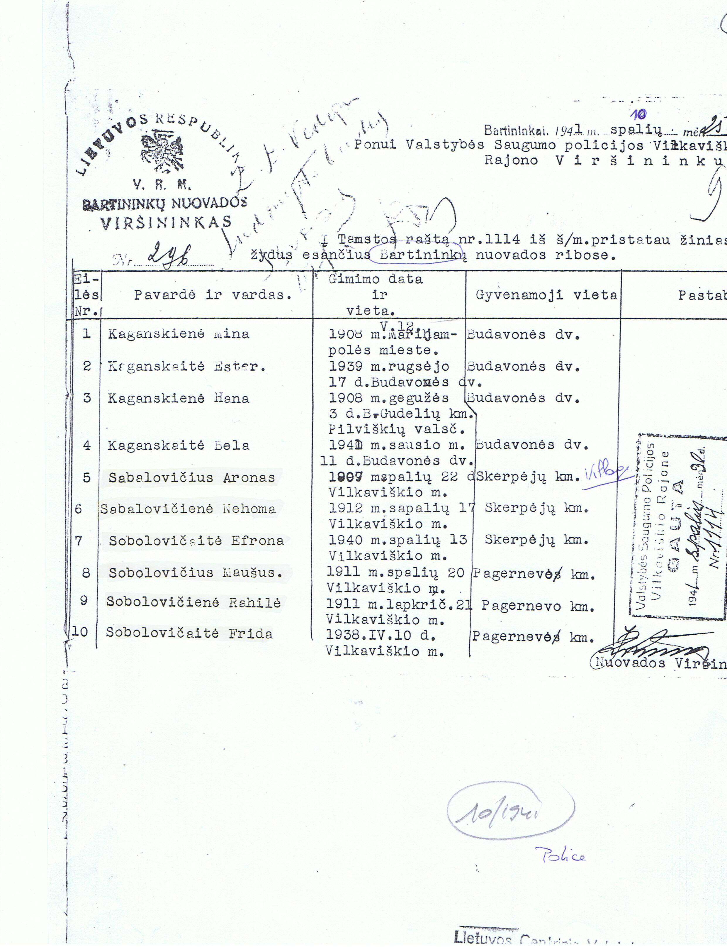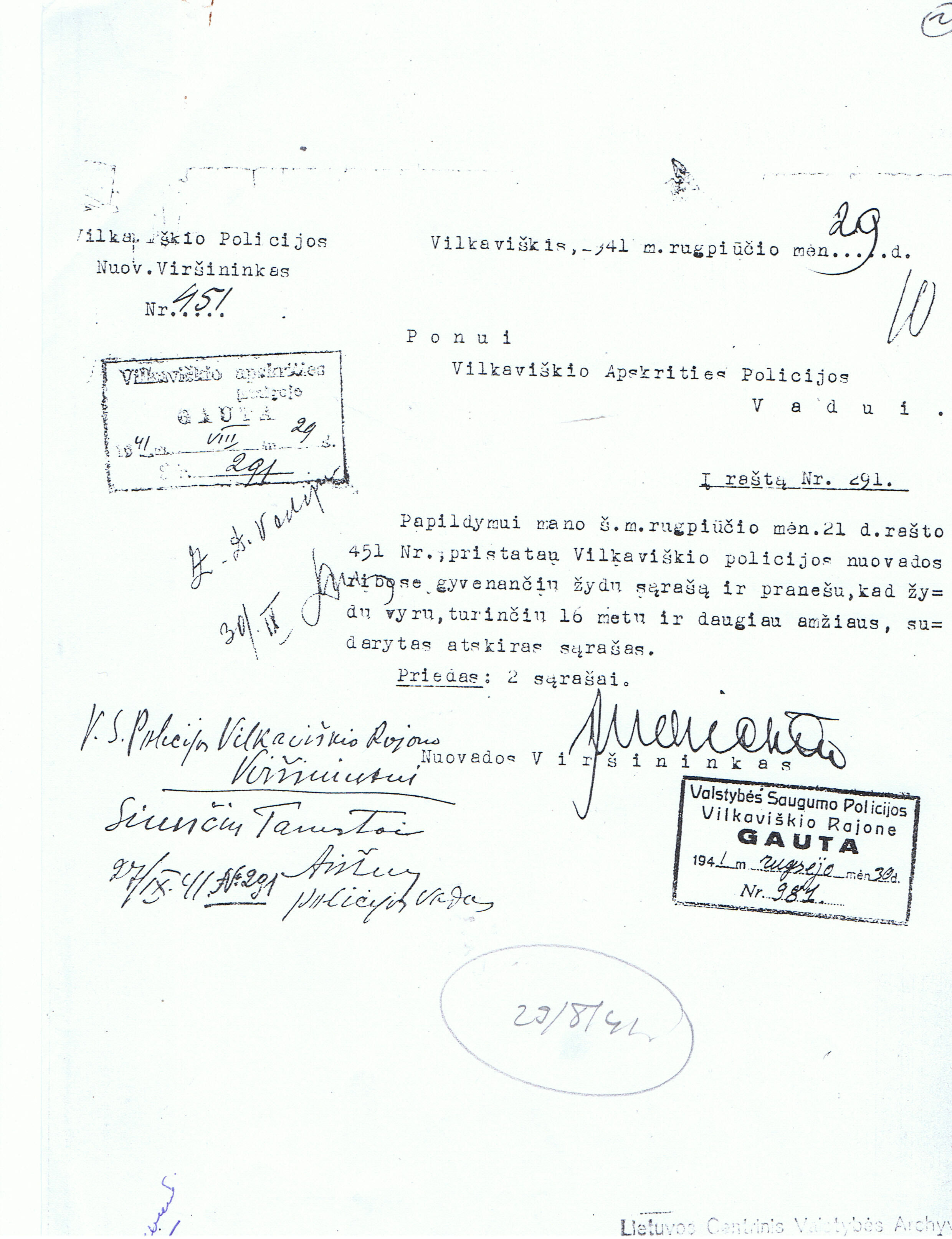 (Einsatzkommando 3 took over the Vilnius area on August 9, 1941 and the Schaulen area on October 2, 1941. Up to this time, Einsatzkommando 9 handled Vilnius and Einsatzkommando 2 handled Schaulen.)
